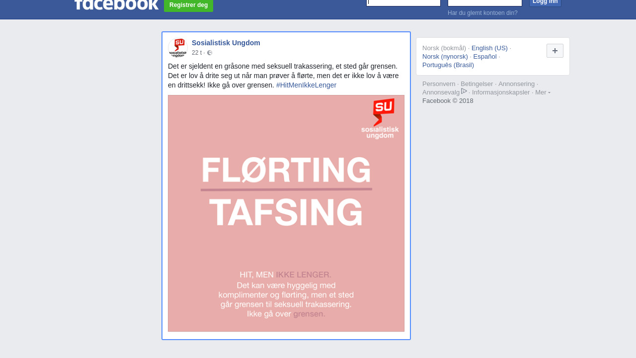 Det er sjeldent en gråsone med seksuell trakassering, et sted går grensen. Det er lov å drite seg ut når man prøver å flørte, men det er ikke lov å være en drittsekk! Ikke gå over grensen. #HitMenIkkeLenger