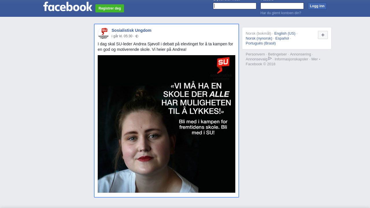 I dag skal SU-leder Andrea Sjøvoll i debatt på elevtinget for å ta kampen for en god og motiverende skole. Vi heier på Andrea!