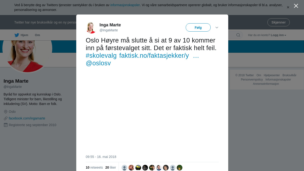 RT @IngaMarte: Oslo Høyre må slutte å si at 9 av 10 kommer inn på førstevalget sitt. Det er faktisk helt feil. #skolevalg https://t.co/6zA5Zs34ML @oslosv