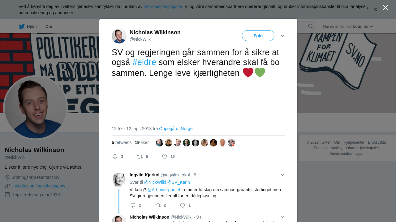 SV går sammen med regjeringspartiene om en samboergaranti for eldre på sykehjem. Garantien skal gjelde også når den ene parten ikke er syk og pleietrengende. AP og KrF mener dette gjør at friske kan fortrenge andre som trenger sykehjemsplass.