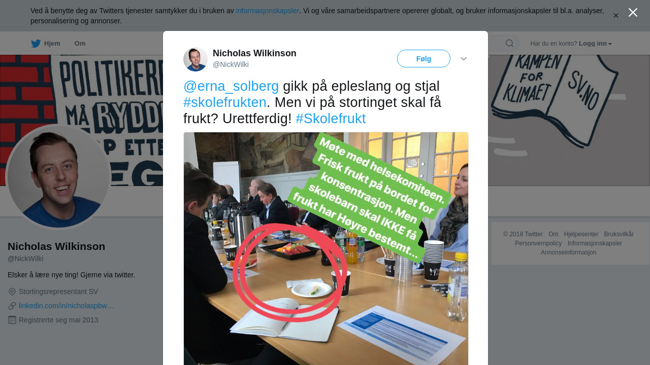 @erna_solberg gikk på epleslang og stjal #skolefrukten. Men vi på stortinget skal få frukt? Urettferdig! #Skolefrukt https://t.co/AAs3D3EjRu