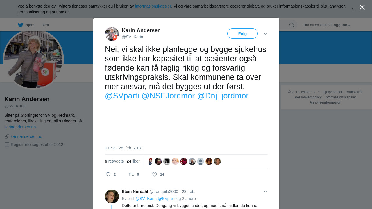 RT @SV_Karin: Nei, vi skal ikke planlegge og bygge sjukehus som ikke har kapasitet til at pasienter også fødende kan få faglig ri… https://t.co/4FwpqtOSAJ