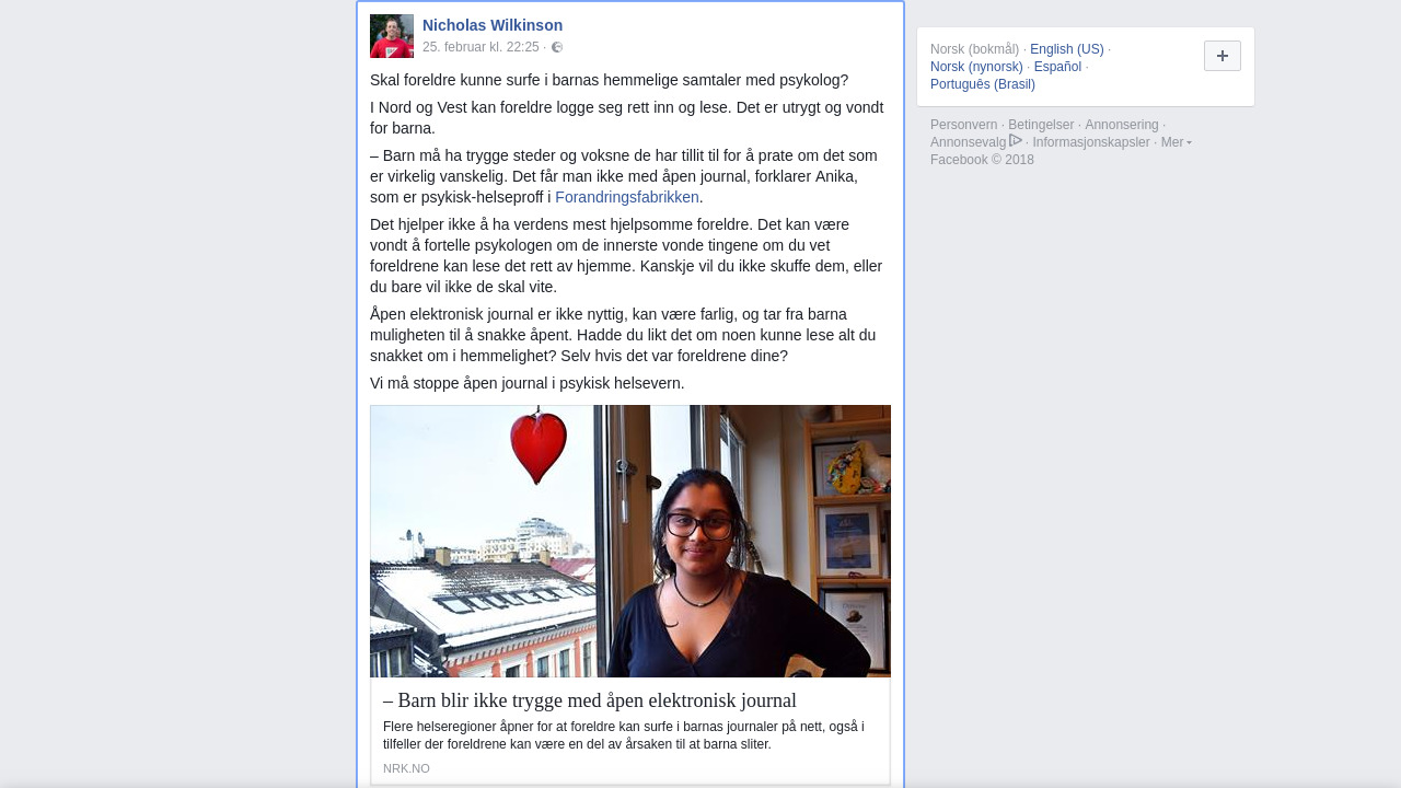 Åpen elektronisk journal er ikke nyttig, kan være farlig, og tar fra barna muligheten til å snakke åpent. Hadde du likt det om noen kunne lese alt du snakket om i hemmelighet? Selv hvis det var foreldrene dine?