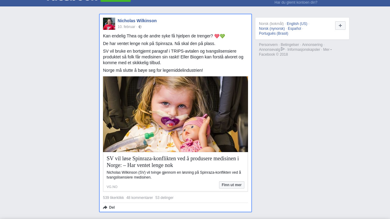 SV vil bruke en bortgjemt paragraf i TRIPS-avtalen og tvangslisensiere produktet så folk får medisinen sin raskt! Eller Biogen kan forstå alvoret og komme med et skikkelig tilbud.