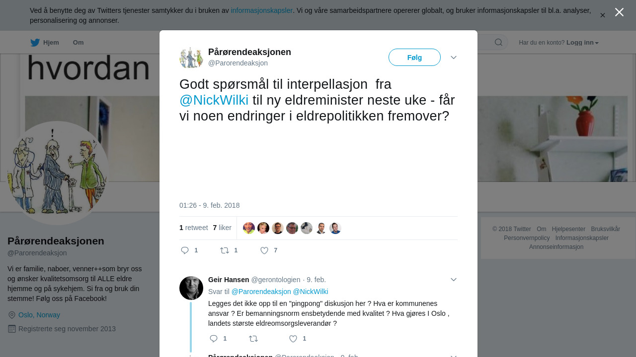 RT @Parorendeaksjon: Godt spørsmål til interpellasjon fra @NickWilki til ny eldreminister neste uke - får vi noen endringer i eldrepoli… https://t.co/6gIfQ4Abek