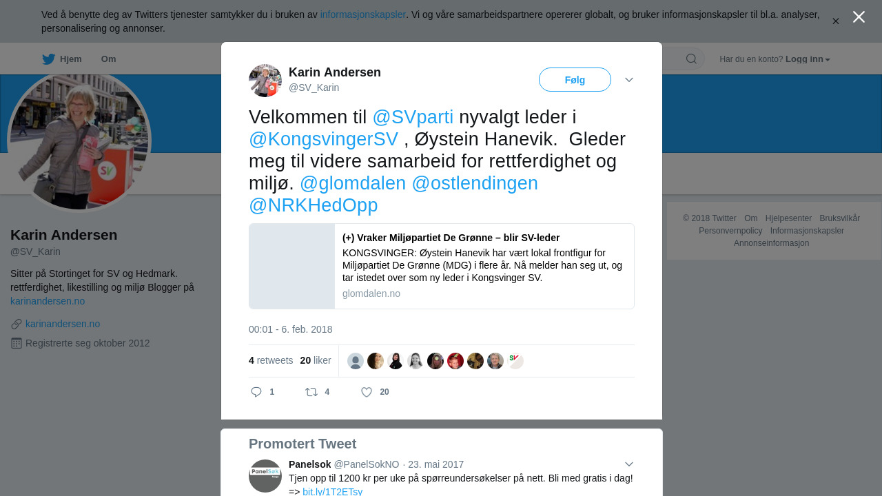 RT @SV_Karin: Velkommen til @SVparti nyvalgt leder i @KongsvingerSV , Øystein Hanevik. Gleder meg til videre samarbeid for rettf… https://t.co/MoQajUF8sa