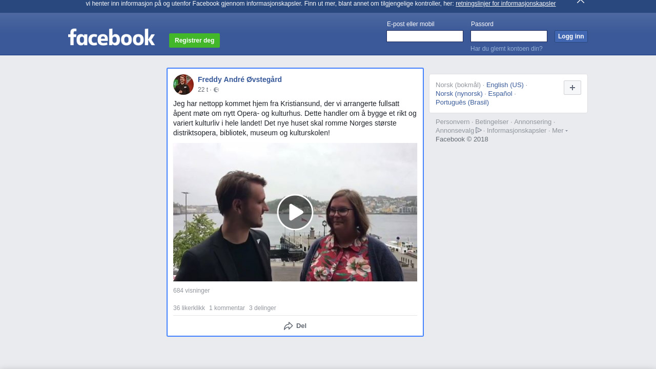 Jeg har nettopp kommet hjem fra Kristiansund, der vi arrangerte fullsatt åpent møte om nytt Opera- og kulturhus. Dette handler om å bygge et rikt og variert kulturliv i hele landet! Det nye huset skal romme Norges største distriktsopera, bibliotek, museum og kulturskolen!