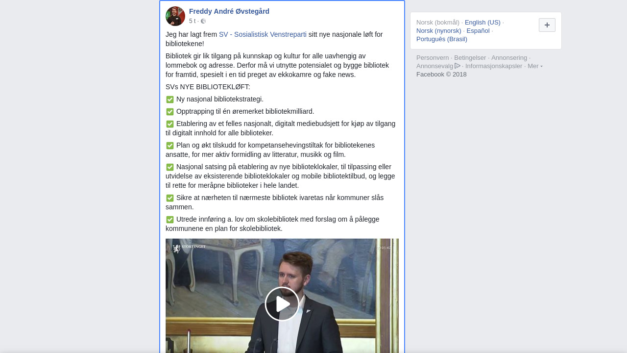Jeg har lagt frem SV - Sosialistisk Venstreparti sitt nye nasjonale løft for bibliotekene!