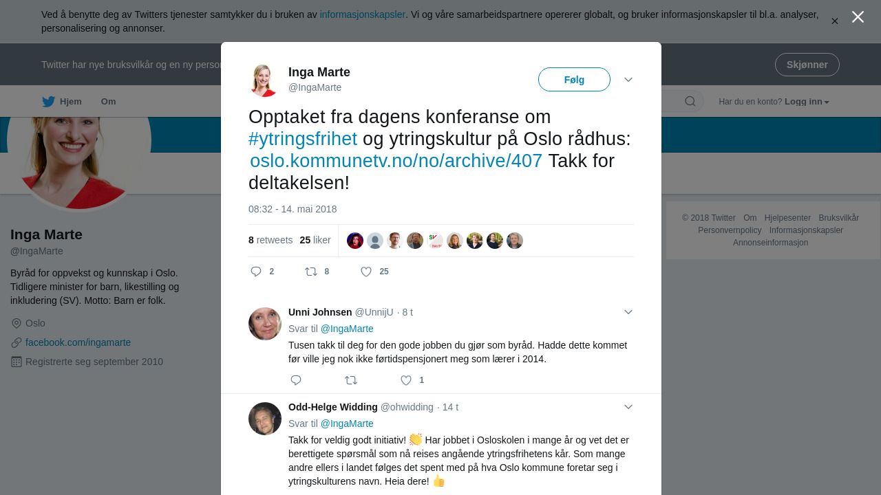 RT @IngaMarte: Opptaket fra dagens konferanse om #ytringsfrihet og ytringskultur på Oslo rådhus: https://t.co/X567nm6AWF Takk for deltakelsen!