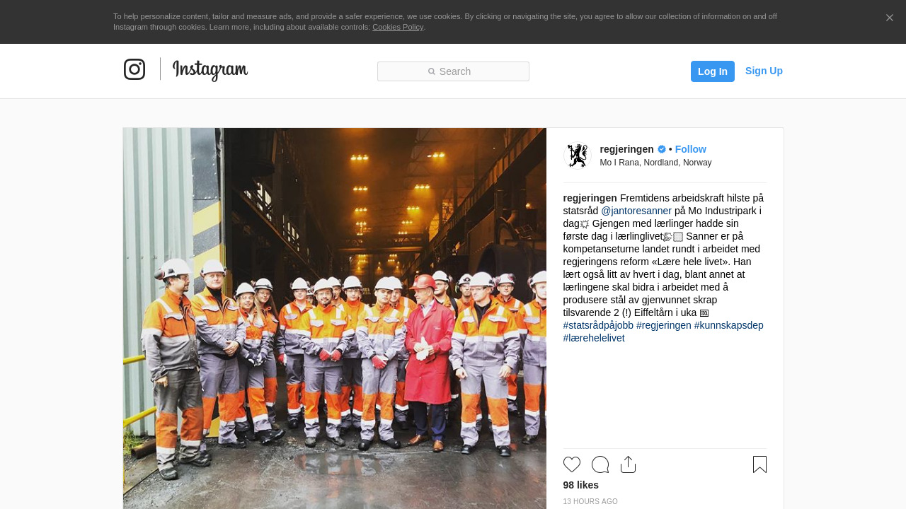Fremtidens arbeidskraft hilste på statsråd @jantoresanner på Mo Industripark i dag💥 Gjengen med lærlinger hadde sin første dag i lærlinglivet👏🏻 Sanner er på kompetanseturne landet rundt i arbeidet med regjeringens reform «Lære hele livet». Han lært også litt av hvert i dag, blant annet at lærlingene skal bidra i arbeidet med å produsere stål av gjenvunnet skrap tilsvarende 2 (!) Eiffeltårn i uka 🆒 #statsrådpåjobb #regjeringen #kunnskapsdep #lærehelelivet