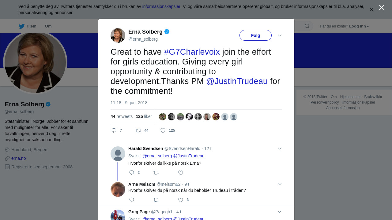 RT @erna_solberg: Great to have #G7Charlevoix join the effort for girls education. Giving every girl opportunity & contributing to de… https://t.co/dcl3YzhCir