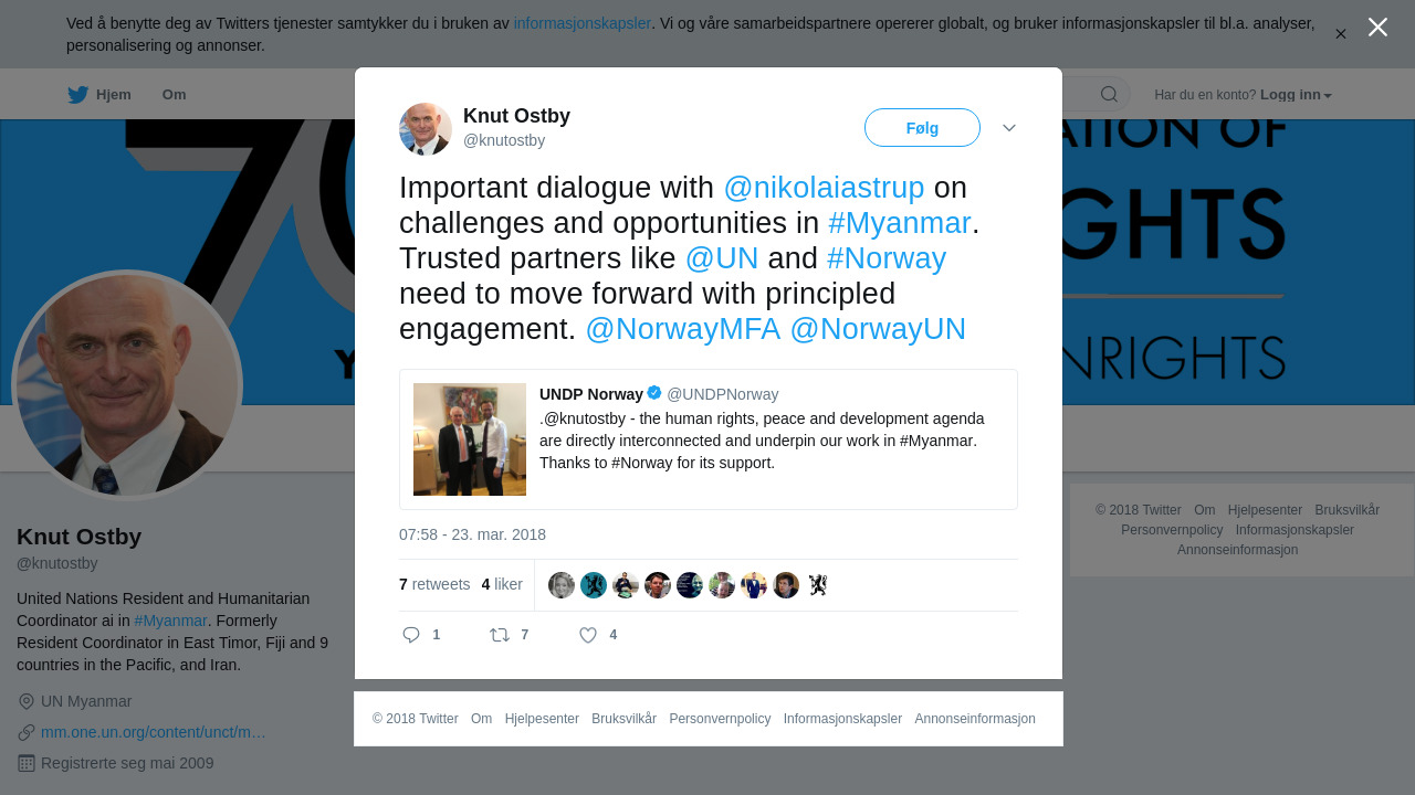 RT @knutostby: Important dialogue with @nikolaiastrup on challenges and opportunities in #Myanmar. Trusted partners like @UN and… https://t.co/x4sD98sMCN