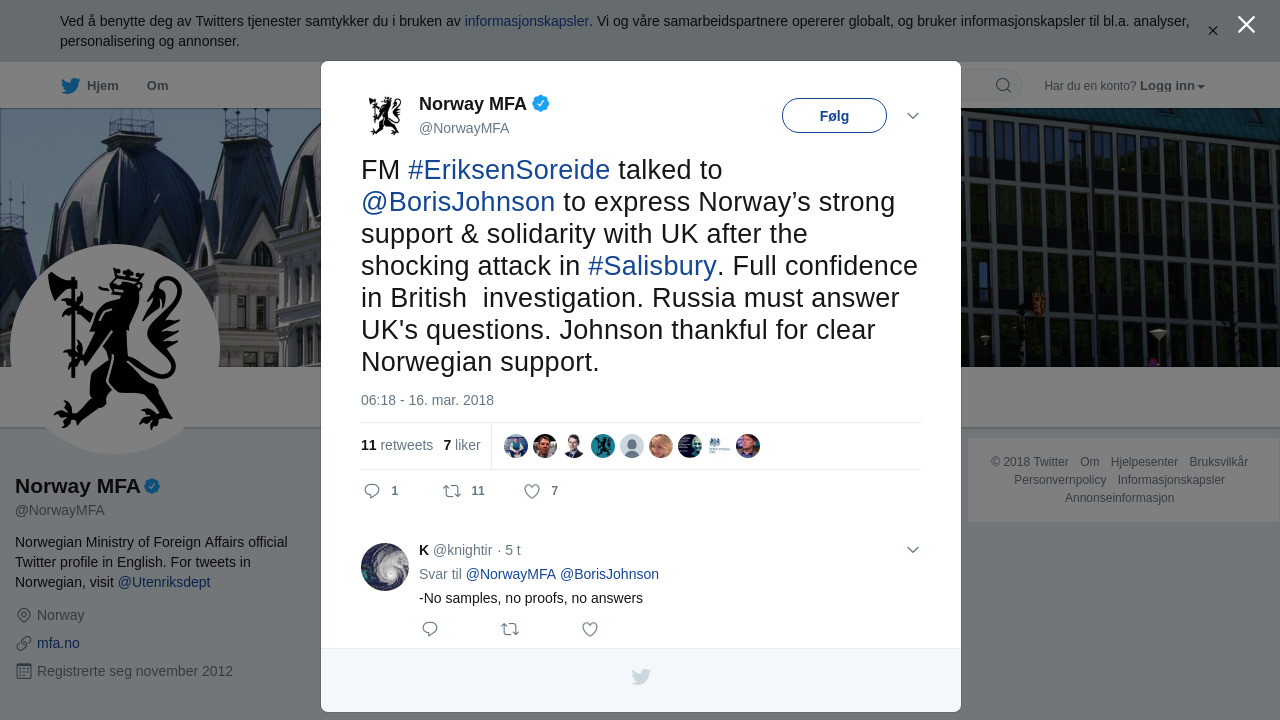 FM #EriksenSoreide talked to @BorisJohnson to express Norway’s strong support & solidarity with UK after the shocki… https://t.co/fRLVTeaFpe