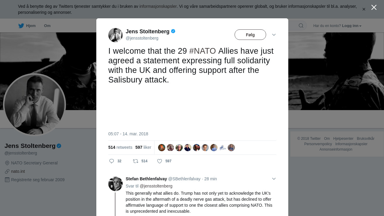 RT @jensstoltenberg: I welcome that the 29 #NATO Allies have just agreed a statement expressing full solidarity with the UK and offering… https://t.co/rZdXvHGYO3