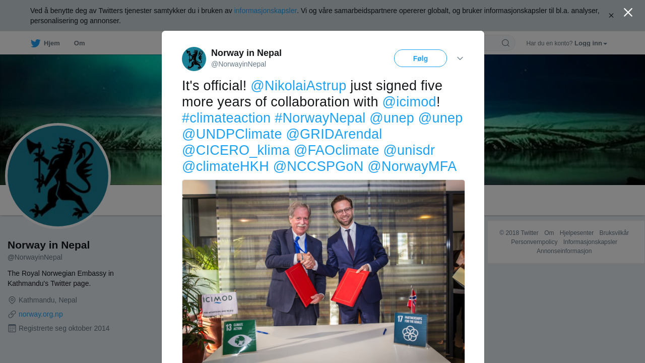 RT @NorwayinNepal: It's official! @NikolaiAstrup just signed five more years of collaboration with @icimod! #climateaction… https://t.co/45Y6zcc1eU