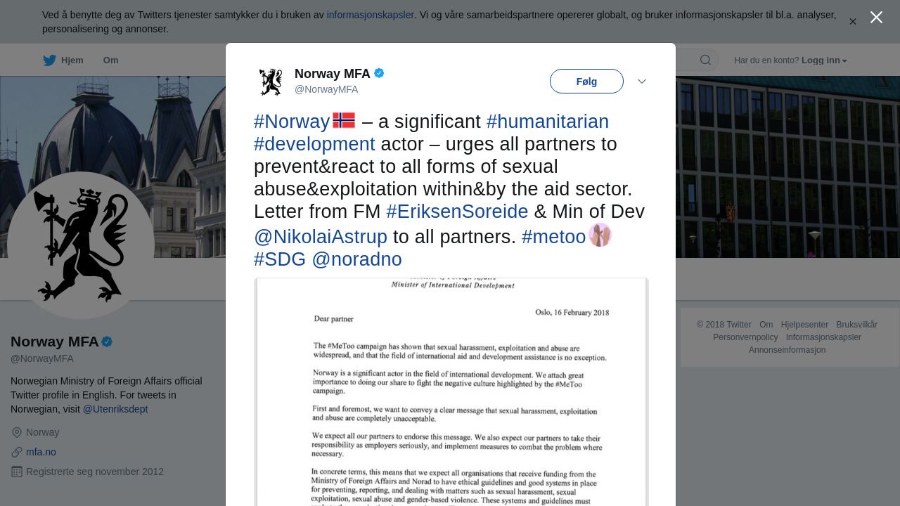 #Norway – a significant #humanitarian #development actor – urges all partners to prevent&react to all forms of sexu… https://t.co/NgOe3Lpat6