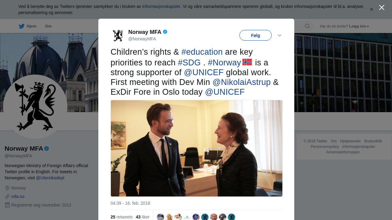 Children’s rights & #education are key priorities to reach #SDG . #Norway is a strong supporter of @UNICEF global w… https://t.co/LugAX1UDAV