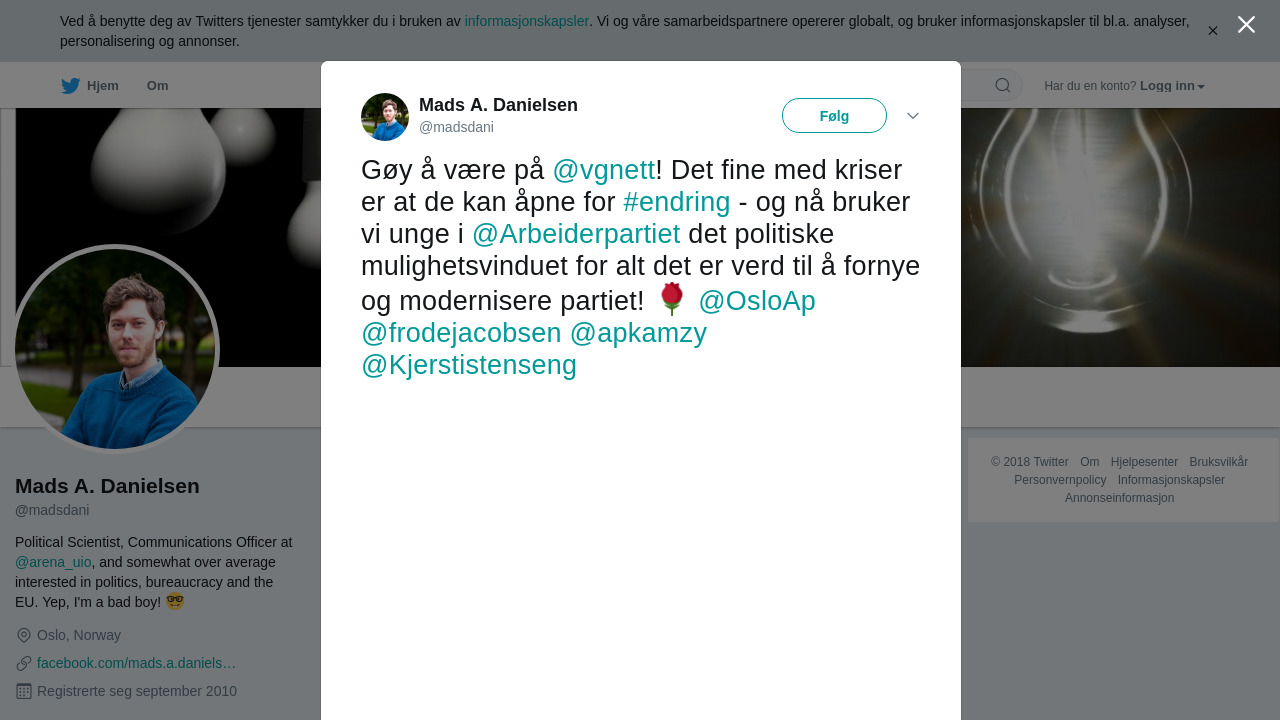 RT @madsdani: Gøy å være på @vgnett! Det fine med kriser er at de kan åpne for #endring - og nå bruker vi unge i @Arbeiderpartiet… https://t.co/EHyvjPupVs