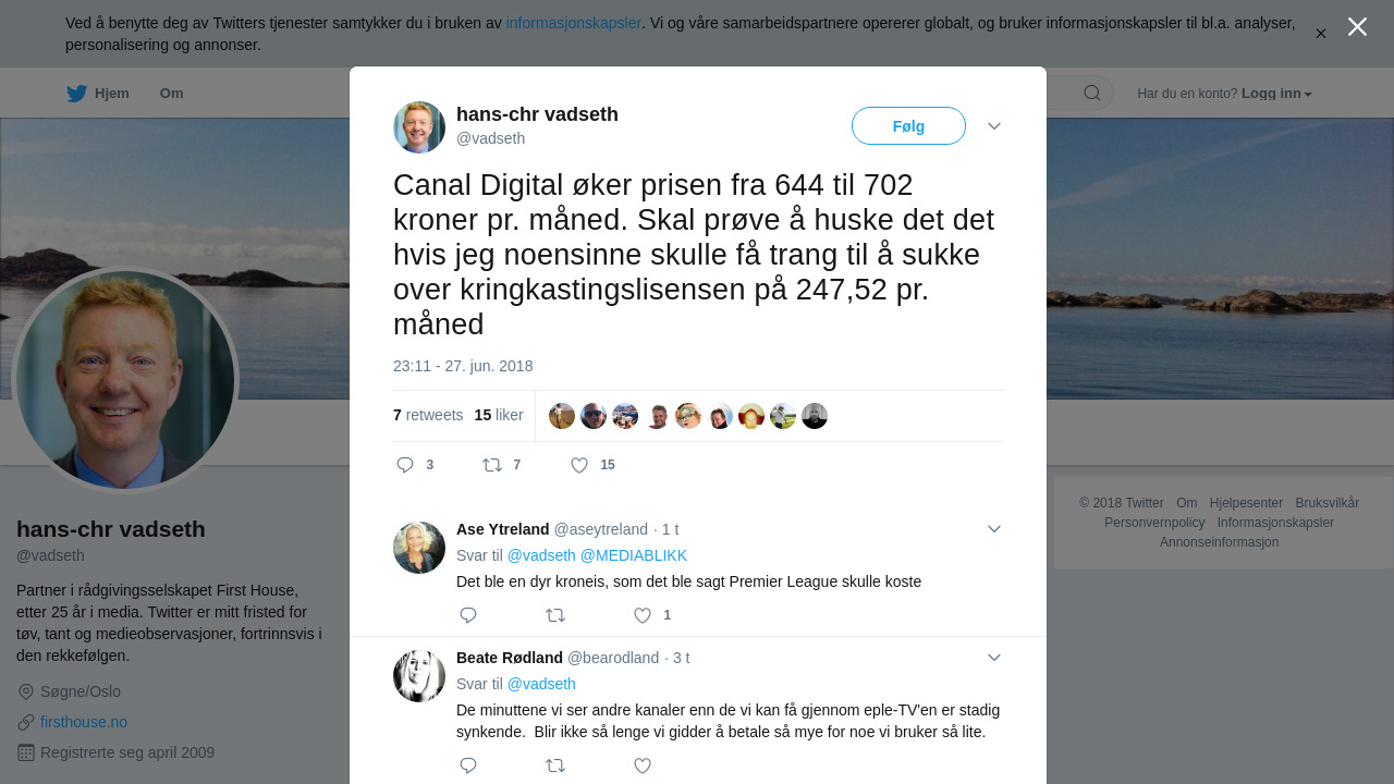 RT @vadseth: Canal Digital øker prisen fra 644 til 702 kroner pr. måned. Skal prøve å huske det det hvis jeg noensinne skulle få… https://t.co/ckaF9vjRSd