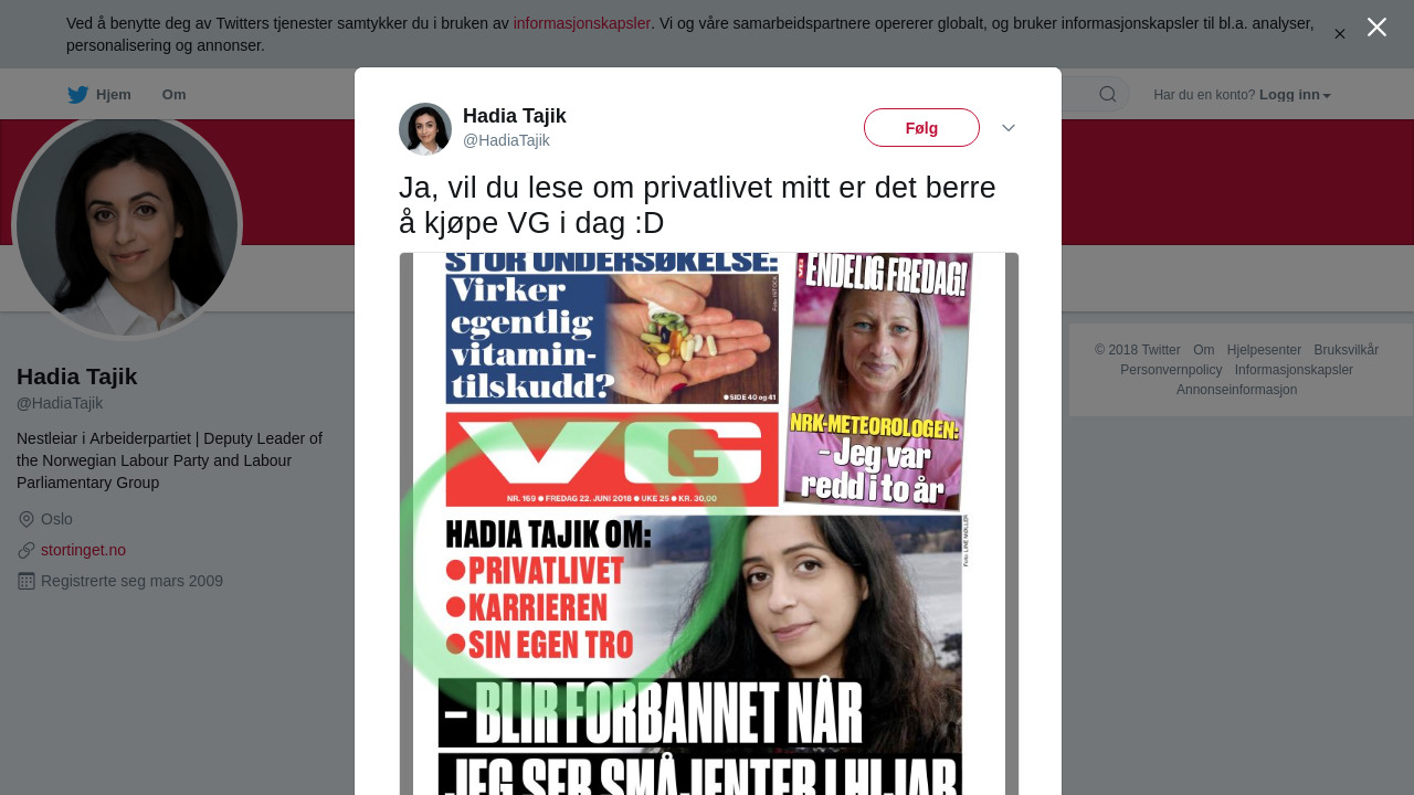 RT @HadiaTajik: Ja, vil du lese om privatlivet mitt er det berre å kjøpe VG i dag :D https://t.co/KjboLQmdzW