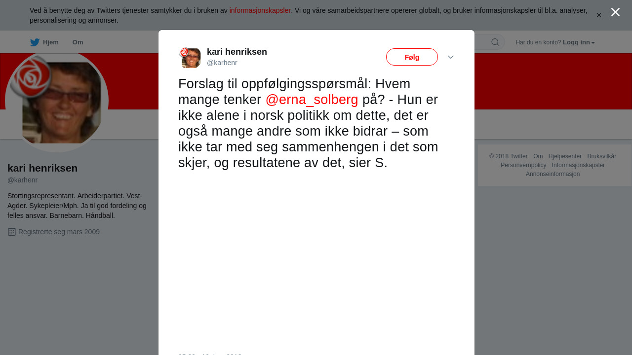 Forslag til oppfølgingsspørsmål: Hvem mange tenker @erna_solberg på? - Hun er ikke alene i norsk politikk om dette, det er også mange andre som ikke bidrar – som ikke tar med seg sammenhengen i det som skjer, og resultatene av det, sier S. https://t.co/yf3StVZfJk