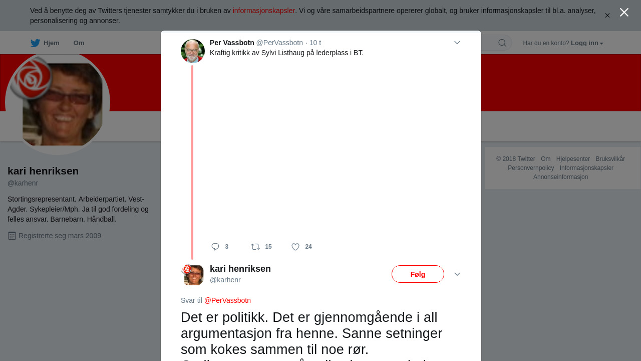 @PerVassbotn Det er politikk. Det er gjennomgående i all argumentasjon fra henne. Sanne setninger som kokes sammen til noe rør. Godhetstyranner, på gullstol, at ap prioriterer terror osv. Det er politikk, til nå bagatellisert av høyresida og media.