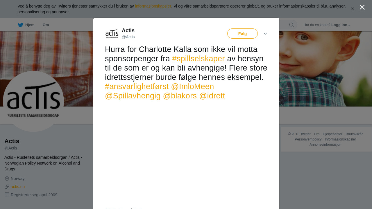 RT @Actis: Hurra for Charlotte Kalla som ikke vil motta sponsorpenger fra #spillselskaper av hensyn til de som er og kan bli a… https://t.co/f9tpGwhbsY