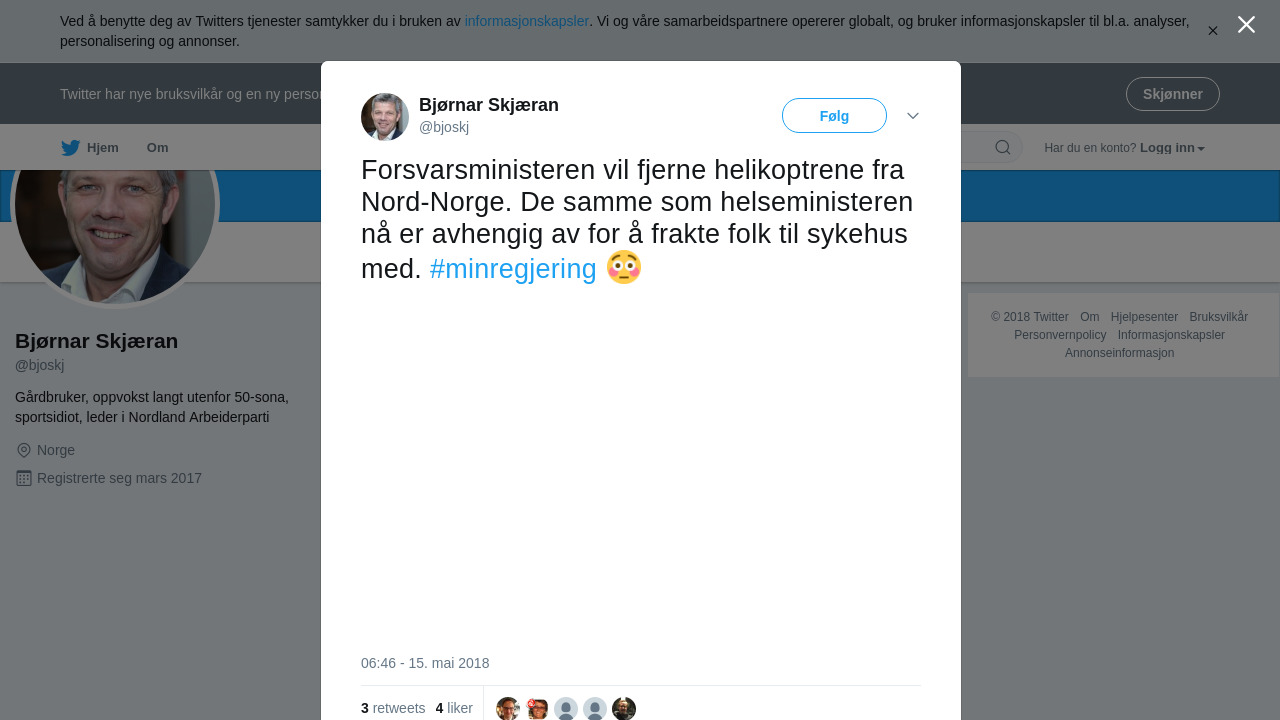RT @bjoskj: Forsvarsministeren vil fjerne helikoptrene fra Nord-Norge. De samme som helseministeren nå er avhengig av for å fra… https://t.co/QZ0L3aQO6C