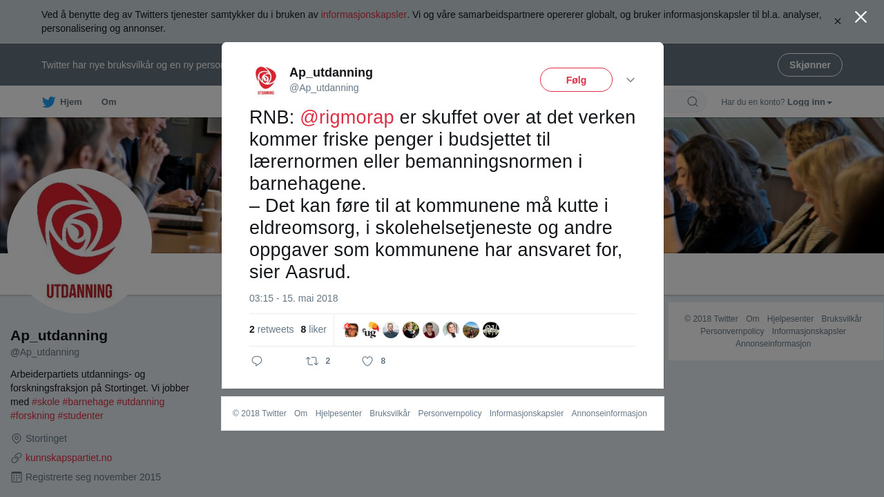 RT @Ap_utdanning: RNB: @rigmorap er skuffet over at det verken kommer friske penger i budsjettet til lærernormen eller bemanningsnorm… https://t.co/tnpAuvFqxr