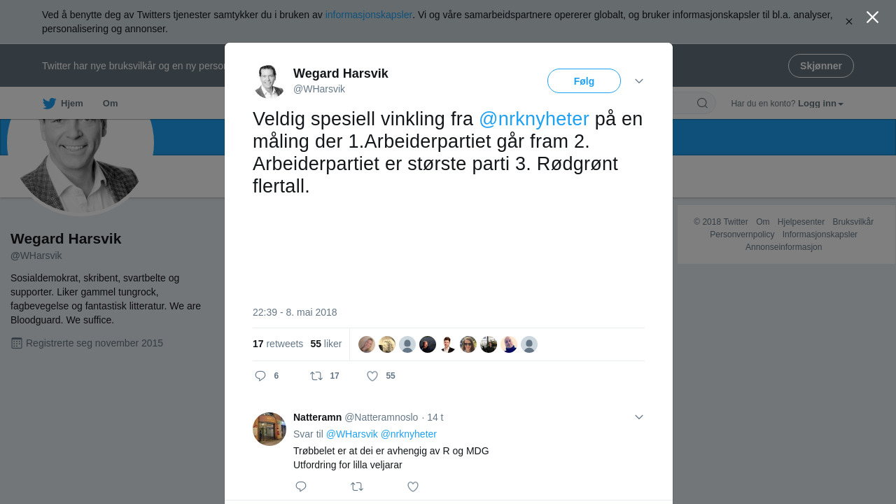 RT @WHarsvik: Veldig spesiell vinkling fra @nrknyheter på en måling der 1.Arbeiderpartiet går fram 2. Arbeiderpartiet er største… https://t.co/zYsp0cfXfj