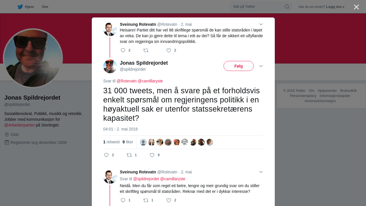RT @spildrejordet: @Rotevatn @camillaryste 31 000 tweets, men å svare på et forholdsvis enkelt spørsmål om regjeringens politikk i en… https://t.co/H8mlIzHbwL