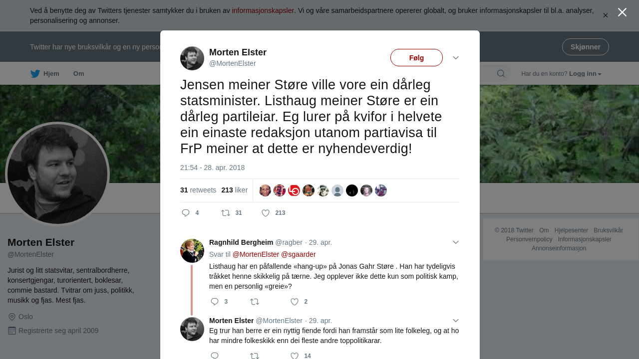 RT @MortenElster: Jensen meiner Støre ville vore ein dårleg statsminister. Listhaug meiner Støre er ein dårleg partileiar. Eg lurer p… https://t.co/80wGwqYYqb