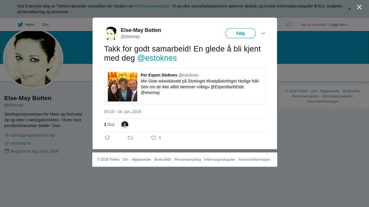 “Min Siste arbeidskveld på Stortinget #livetpåstortinget Herlige folk! Selv om de ikke alltid stemmer «riktig» @EspenBarthEide @elsemay”