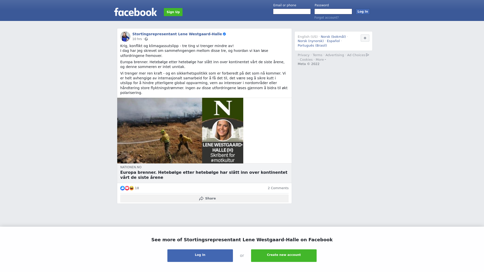 Krig, konflikt og klimagassutslipp - tre ting vi trenger mindre av!\nI dag har jeg skrevet om sammehngengen mellom disse tre, og hvordan vi kan løse utfordringene fremover. \n\nEuropa brenner. Hetebølge etter hetebølge har slått inn over kontinentet vårt de siste årene, og denne sommeren er intet unntak.\n\nVi trenger mer ren kraft - og en sikkerhetspolitikk som er forberedt på det som nå kommer. Vi er helt avhengige av internasjonalt samarbeid for å få det til, det være seg å sikre kutt i utslipp for å hindre ytterligere global oppvarming, vern av interesser i nordområder eller håndtering store flyktningstrømmer. Ingen av disse utfordringene løses gjennom å bidra til økt polarisering.
