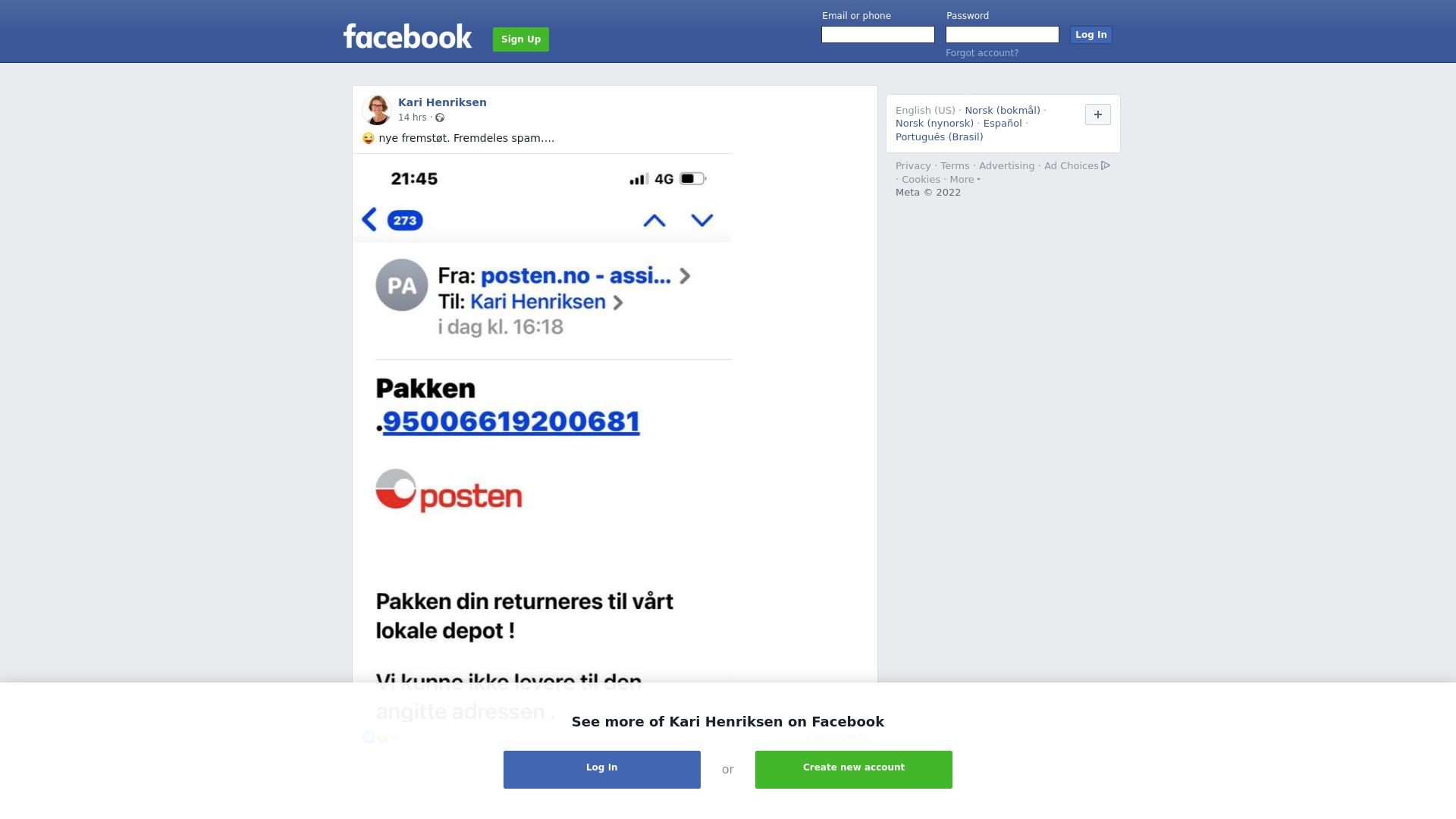 Orginalt innlegg på Facebook
