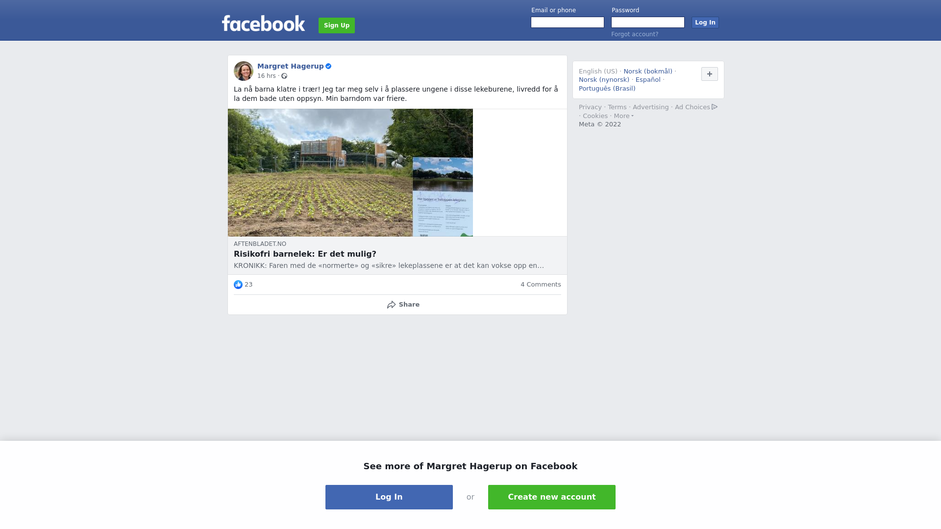 Orginalt innlegg på Facebook