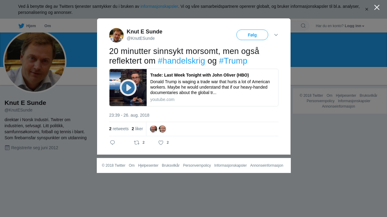 RT @KnutESunde: 20 minutter sinnsykt morsomt, men også reflektert om #handelskrig og #Trump https://t.co/XeXKz1vSci