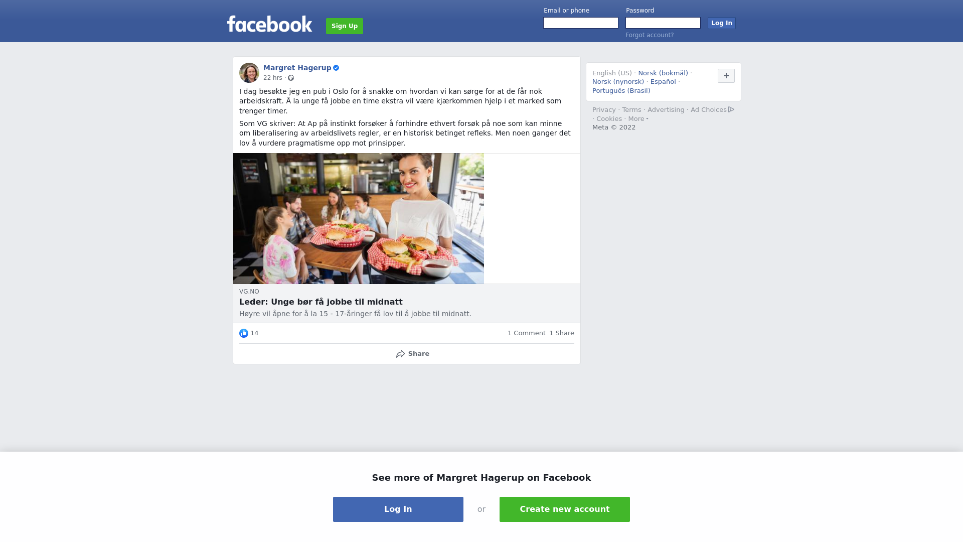 I dag besøkte jeg en pub i Oslo for å snakke om hvordan vi kan sørge for at de får nok arbeidskraft. Å la unge få jobbe en time ekstra vil være kjærkommen hjelp i et marked som trenger timer. \n\nSom VG skriver: At Ap på instinkt forsøker å forhindre ethvert forsøk på noe som kan minne om liberalisering av arbeidslivets regler, er en historisk betinget refleks. Men noen ganger det lov å vurdere pragmatisme opp mot prinsipper.