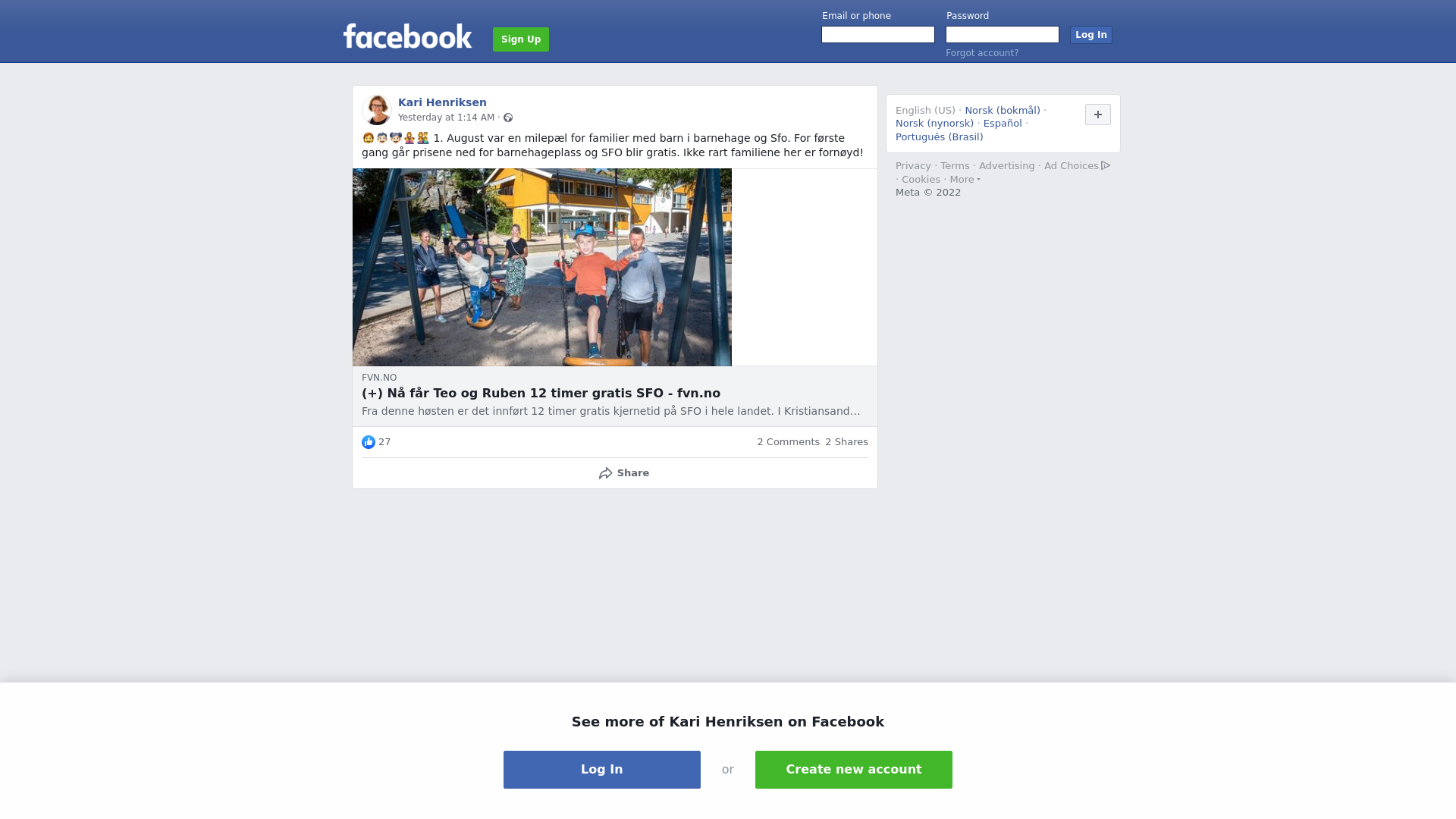 Orginalt innlegg på Facebook