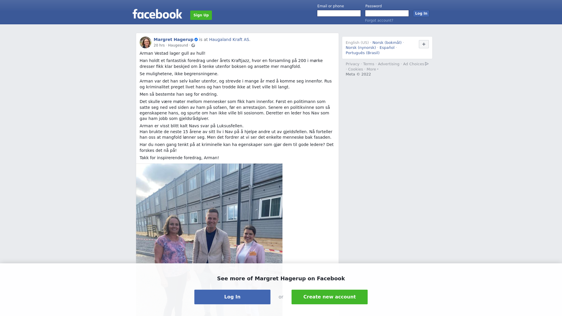 Arman Vestad lager gull av hull! \n\nHan holdt et fantastisk foredrag under årets Kraftjazz, hvor en forsamling på 200 i mørke dresser fikk klar beskjed om å tenke utenfor boksen og ansette mer mangfold. \n\nSe mulighetene, ikke begrensningene. \n\nArman var det han selv kaller utenfor, og strevde i mange år med å komme seg innenfor. Rus og kriminalitet preget livet hans og han trodde ikke at livet ville bli langt. \n\nMen så bestemte han seg for endring. \n\nDet skulle være møter mellom mennesker som fikk ham innenfor. Først en politimann som satte seg ned ved siden av ham på sofaen, før en arrestasjon. Senere en politikvinne som så egenskapene hans, og spurte om han ikke ville bli sosionom. Deretter en leder hos Nav som gav ham jobb som gjeldsrådgiver. \n\nArman er visst blitt kalt Navs svar på Luksusfellen. \nHan brukte de neste 15 årene av sitt liv i Nav på å hjelpe andre ut av gjeldsfellen. Nå forteller han oss at mangfold lønner seg. Men det fordrer at vi ser det enkelte menneske bak fasaden. \n\nHar du noen gang tenkt på at kriminelle kan ha egenskaper som gjør dem til gode ledere? Det forskes det nå på! \n\nTakk for inspirerende foredrag, Arman!