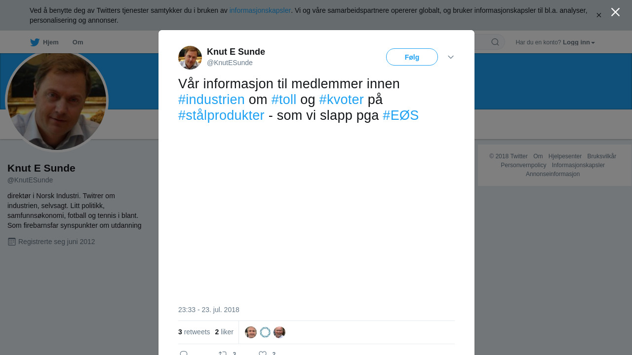 RT @KnutESunde: Vår informasjon til medlemmer innen #industrien om #toll og #kvoter på #stålprodukter - som vi slapp pga #EØS https://t.co/7UxcZ8vv1v