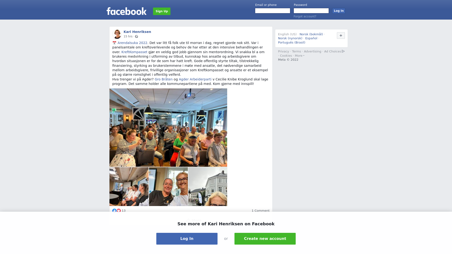 📆 Arendalsuka 2022. Det var litt få folk ute til morran i dag, regnet gjorde nok sitt. Var i panelsamtale om kreftoverlevende og behov de har etter at den intensive behandlingen er over. KreftKompasset gjør en veldig god jobb gjennom sin mentorordning. Vi snakka bl a om brukeres medvirkning i utforming av tilbud, kunnskap hos ansatte og arbeidsgivere om hvordan situasjonen er for de som har hatt kreft. Gode offentlig styrte tiltak, tilstrekkelig finansiering, styrking av brukerstemmene i møte med ansatte, det nødvendige samarbeid mellom arbeidsgivere, frivillige organisasjoner som Kreftkompasset og ansatte er et eksempel på og større romslighet i offentlig velferd. \nHva trenger vi på Agder? Gro Bråten og Agder Arbeiderparti v Cecilie Knibe Kroglund skal lage program. Det samme holder alle kommunepartiene på med. Kom gjerne med innspill!