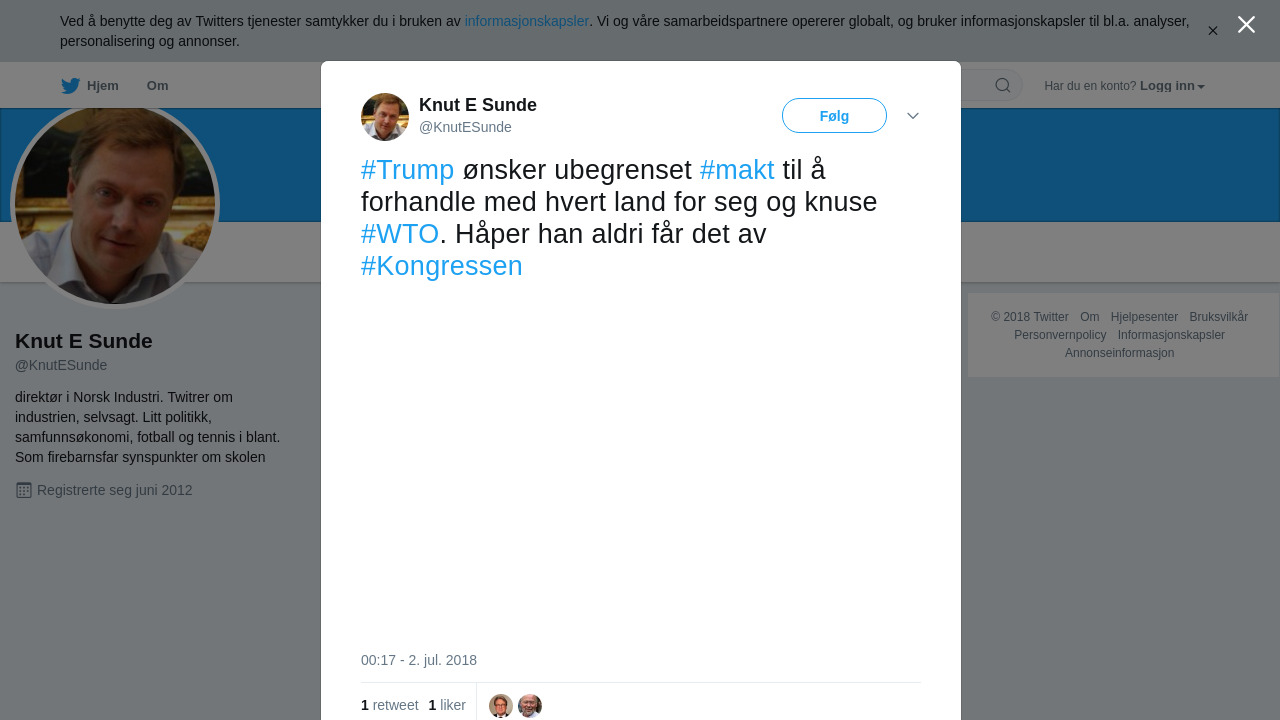 RT @KnutESunde: #Trump ønsker ubegrenset #makt til å forhandle med hvert land for seg og knuse #WTO. Håper han aldri får det av… https://t.co/NQnqJIzUXv