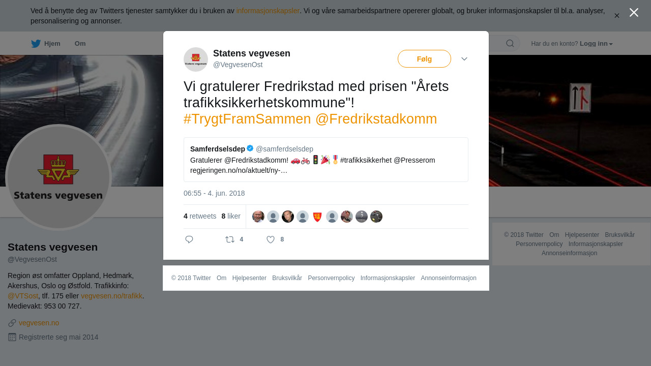 RT @VegvesenOst: Vi gratulerer Fredrikstad med prisen "Årets trafikksikkerhetskommune"! #TrygtFramSammen @Fredrikstadkomm https://t.co/DizRULkDnf