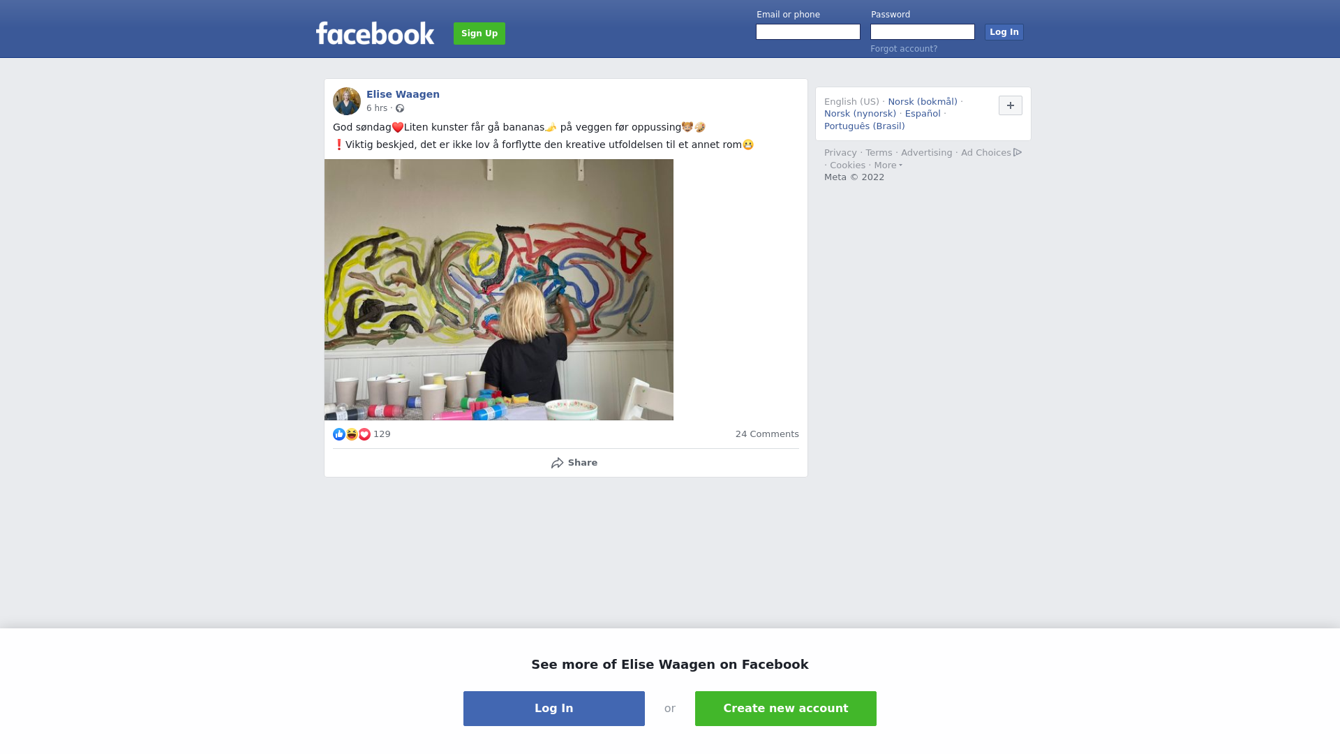 God søndag❤️Liten kunster får gå bananas🍌 på veggen før oppussing👧🏼🎨\n\n❗️Viktig beskjed, det er ikke lov å forflytte den kreative utfoldelsen til et annet rom😬