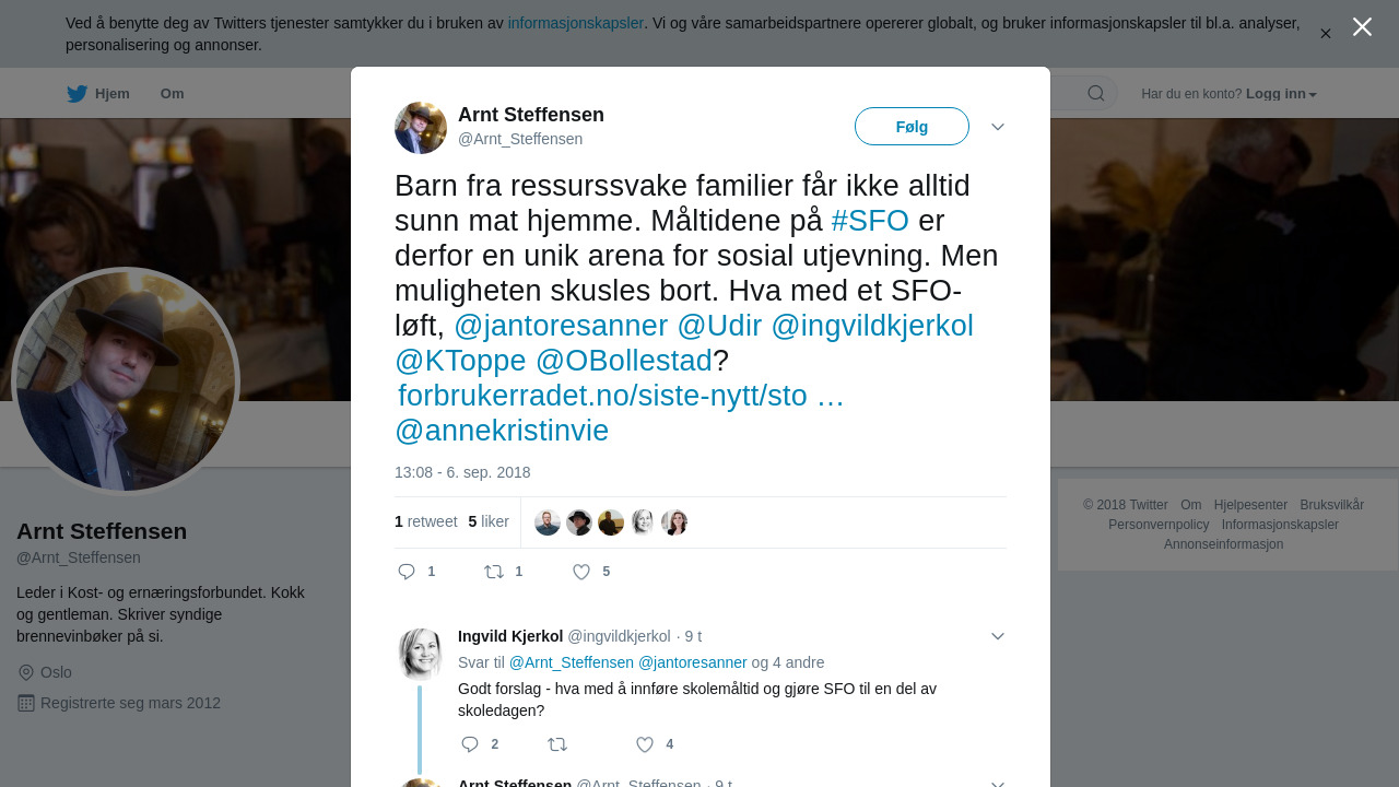 RT @Arnt_Steffensen: Barn fra ressurssvake familier får ikke alltid sunn mat hjemme. Måltidene på #SFO er derfor en unik arena for sosial utjevning. Men muligheten skusles bort. Hva med et SFO-løft, @jantoresanner @Udir @ingvildkjerkol @KToppe @OBollestad? https://t.co/WdISl6cTx2 @annekristinvie