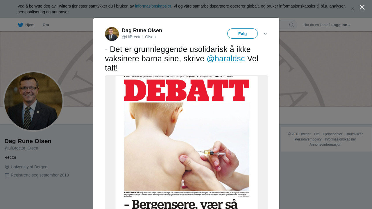 RT @UiBrector_Olsen: - Det er grunnleggende usolidarisk å ikke vaksinere barna sine, skrive @haraldsc Vel talt! https://t.co/17dYRlySNA