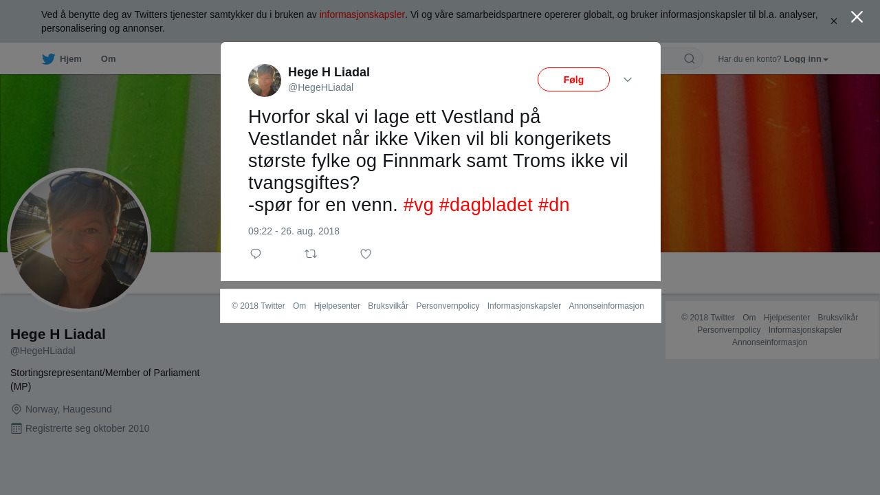 Hvorfor skal vi lage ett Vestland på Vestlandet når ikke Viken vil bli kongerikets største fylke og Finnmark samt T… https://t.co/KxGpyfUUNp