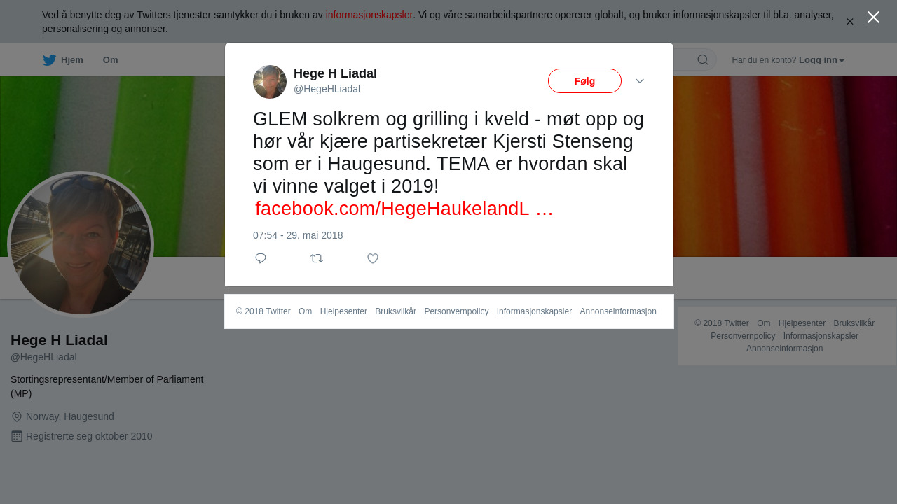 GLEM solkrem og grilling i kveld - møt opp og hør vår kjære partisekretær Kjersti Stenseng som er i Haugesund. TEMA er hvordan skal vi vinne valget i 2019! https://t.co/Pqca8pCZyd