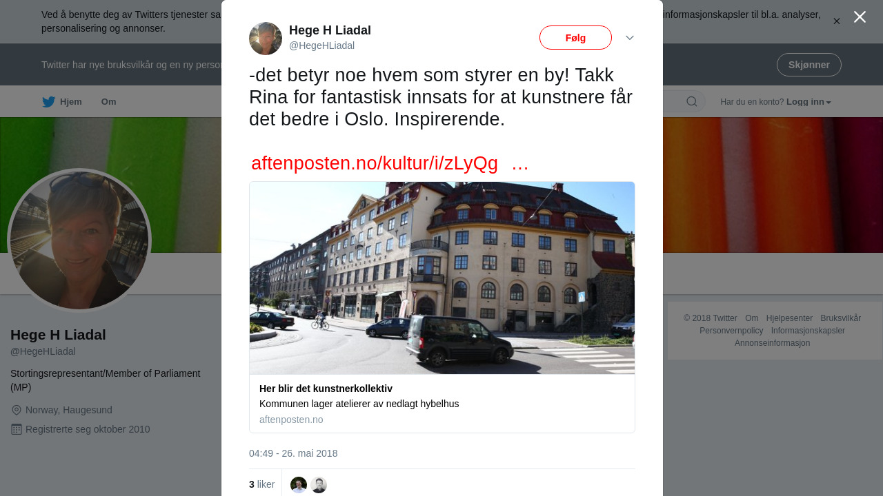 -det betyr noe hvem som styrer en by! Takk Rina for fantastisk innsats for at kunstnere får det bedre i Oslo. Inspirerende. https://t.co/rsmdsNSNEt https://t.co/rsmdsNSNEt